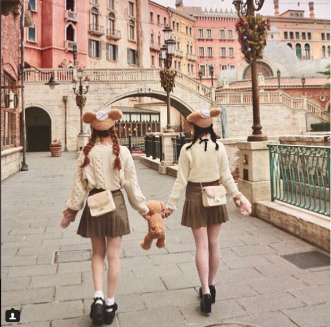 ディズニーで友達とお揃いコーデ60選 双子 グループ着こなし集 カウモ ファッション ファッションアイデア ファッションスタイル